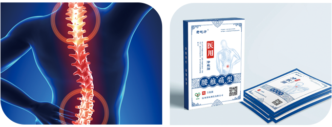 腰椎痛型冷敷贴Lumbar pain cold compress 腰椎痛型冷敷贴 本产品贴于腰椎关节部位,适用于腰椎间盘突出、腰部扭伤、腰肌劳损引起的疼痛麻木等症状需要辅助缓解的人群。 This product is pasted on the lumbar joint and is suitable for people who need auxiliary relief of symptoms such as lumbar disc herniation, lumbar sprain, pain and numbness caused by lumbar muscle strain and so on. Product advantages 产品优势